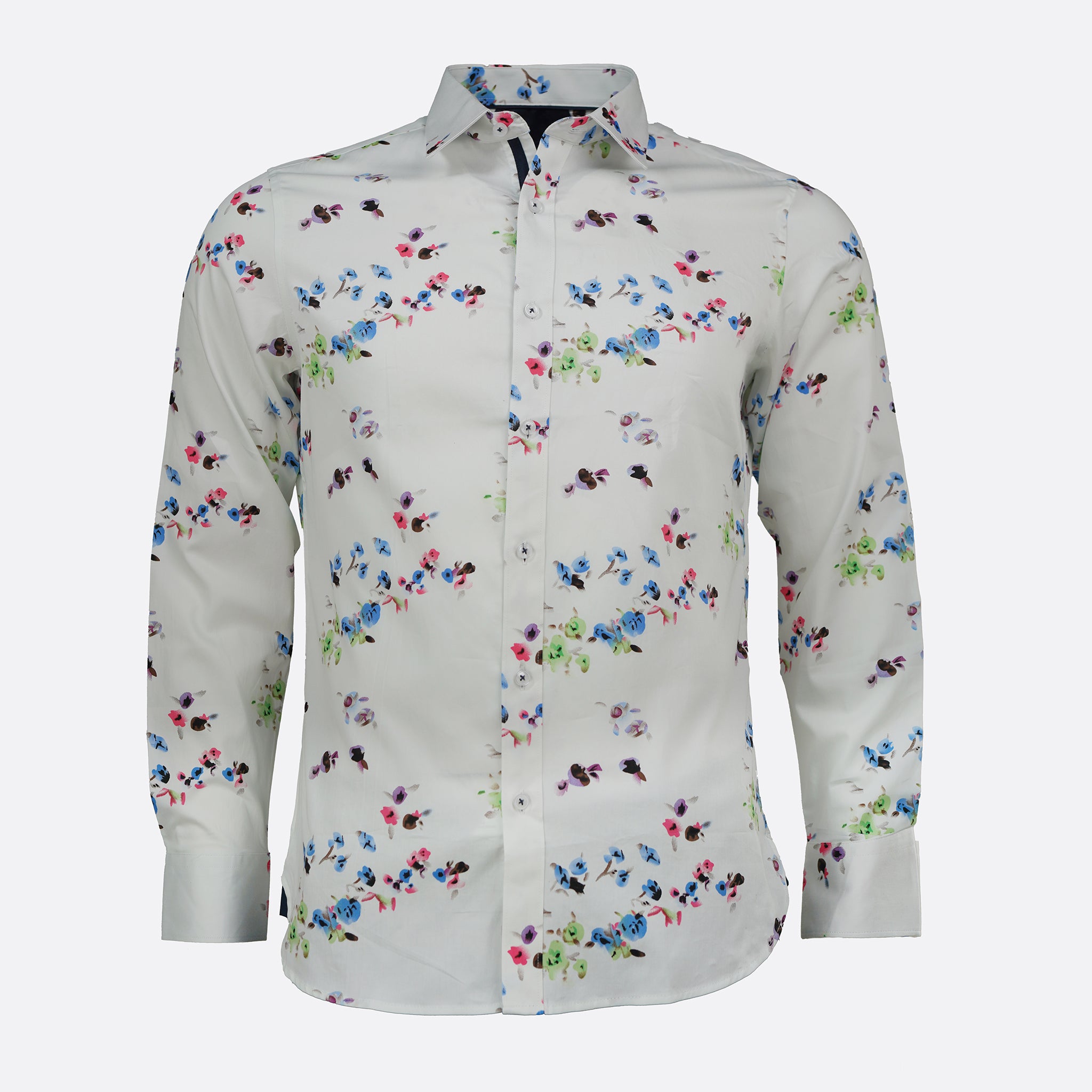 Tailored Fit White Floral Shirt Long Sleeve L